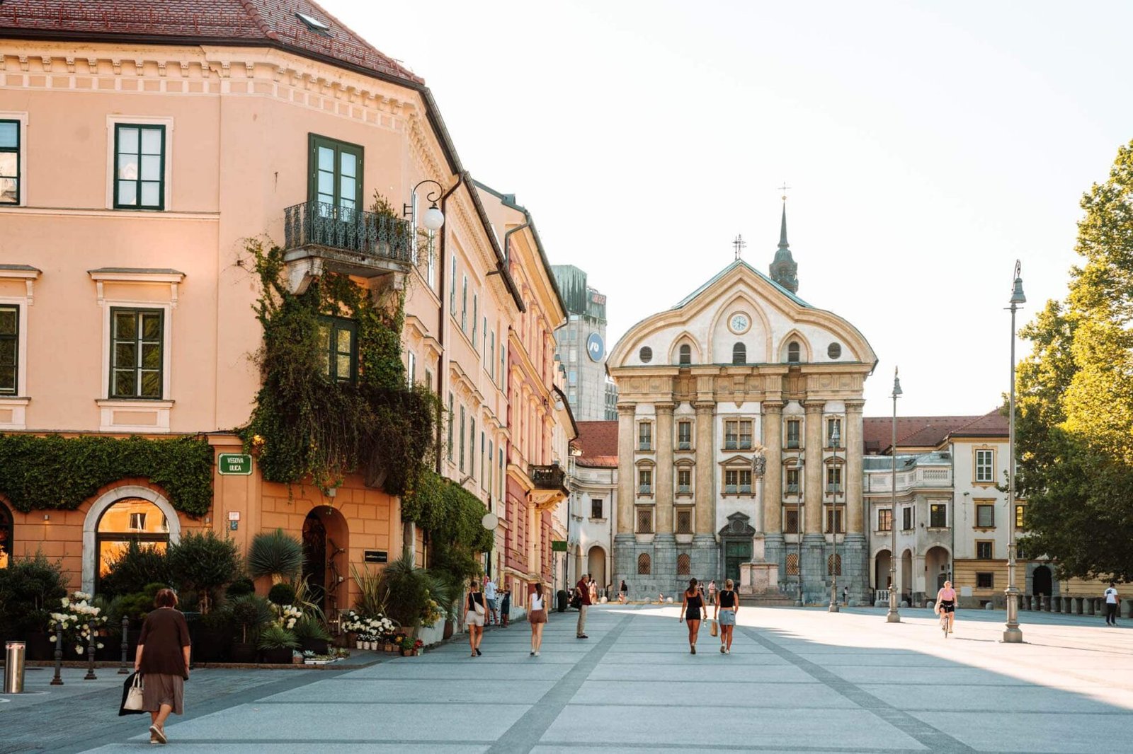 Right on Prešeren Square, one building immediately catches your eye: the Franciscan Monastery with its striking pink façade. The monastery dates back to 1233 and is full of history. Inside, you’ll find colorful frescoes, marble details, and an impressive library filled with centuries-old manuscripts. The monastery sits right next to the famous Triple Bridge, so it’s hard to miss. While the square outside buzzes with people and café terraces, stepping inside feels like entering a peaceful, almost sacred space.