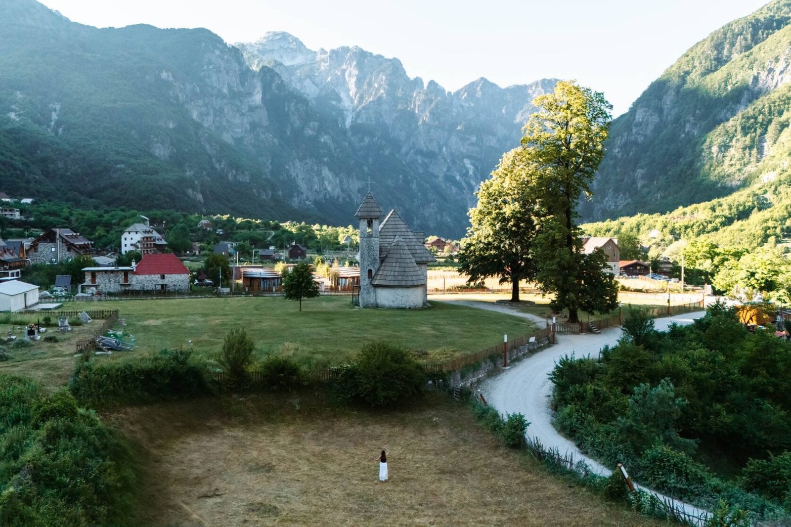 One of Theth’s most famous landmarks is its church, set right in the middle of the valley. Built from light-colored stone with a wooden roof, the church is surrounded by meadows and the jagged peaks of the Albanian Alps—making it one of the most photogenic places in the country.